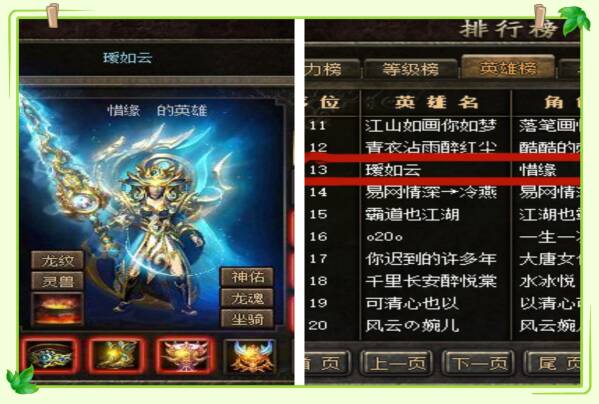 一开始 惜缘 玩的是法师职业,因为法师可以远程攻击,灵活还有杀伤力,法师哪怕就是基础的雷电术,一道细细的闪电火力十足,能电的敌人晕头转向,失魂落魄,后期再练上冰咆哮地狱雷光,雷光风波同时 可以 伤害所有围在身边的敌人,那威力实在太无敌了,所以 惜缘 玩法师非常的带劲,当 106出英雄的时候他 带了个近战的战士英雄打辅助,效果特好,没事他就到处打架,他操作好,攻击力也过得去,所以他到处找敌人PK,有时候没有行会战的时候他也照打不误,所以杀的红通通的,成了大红名,声望远远不够洗红名,就这样痛痛快快玩了一段时间以后,由于现实有事情 无暇顾及游戏,他暂时告别了传奇,但 惜缘 心里一直有个念想,他一定会回来的,时光荏苒,他再次回归了热爱的传奇游戏 !此时的热血传奇游戏,道士职业相当火爆,玩法师的人远不及玩道士的人多,于是 惜缘 新建了这个道士号,道英雄 瑷如云 ,因为他 非常珍惜这么多年来 和热血传奇的缘分,所以他给道士号取名 惜缘 ,这个名字咋一看平淡无奇,但对 惜缘 来说非常的有纪念价值,见证了他与 传奇的缘分。那时候的道士相当的风光,合击相当的有威力,几下就可以把对手的内功炸空,拉不了心法,无法使用主动技能,从而显得很被动,道士的死亡魔眼,俗称紫毒,会使敌人定身的 同时受到1.3倍攻击,死亡魔眼抢怪概率也还不错,所以 惜缘 每逢打不过旗鼓相当的敌人,他就会小小的提升提升,这样抗衡起来没那么累。