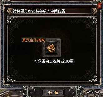 温馨提示:白金或以上等级的装备才能分解,同系列不同阶段装备分解数量相同。