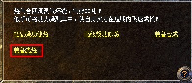 炼气台四周灵气环绕,气势非凡!新增“装备洗炼”系统!通过“装备洗炼”后的装备,其属性数值将有可能获得更高于“装备合成”的效果!工欲善其事,必先利其器!快来体验吧!