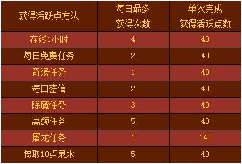 端午佳节至,双倍活跃大狂欢!端午节期间活动期间只要在线满1小时,或者参加丰富的每日免费任务,即可轻松获得双倍活跃点!累积活跃点参加活跃度系统抽奖活动,还有机会获得灵符、天雷弹(小)、龙魄珠(赠)、天雷符、地下组队卷轴等奖励!如果您够幸运,还将获得时装凭证、军鼓、海量经验(最高20亿经验哦!)等珍贵奖励!