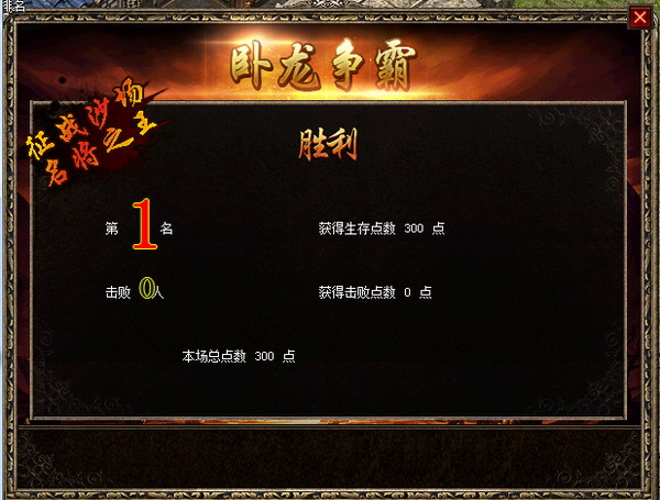 1.每场战斗结束后,所有参与跨服卧龙争霸的勇士都可以在跨服地图的卧龙堡主处领取争霸积分并带回原服。
