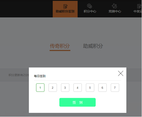 助威积分签到:每日签到可获得助威积分,助威积分可用于抽奖和投票