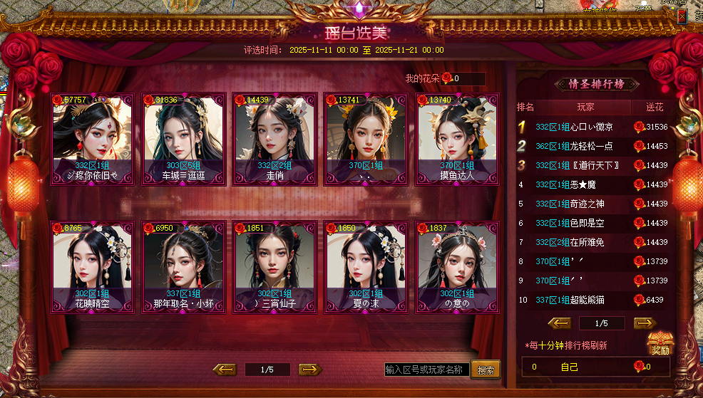 双11女神榜单出炉,全服十大女神与情圣荣耀诞生!