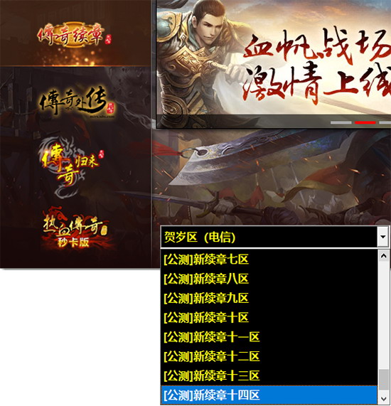 1.客户端安装完成后运行(如已安装客户端的用户请先自动更新客户端,然后重启客户端即可),选择“传奇续章”页签下的“新续章十四区”